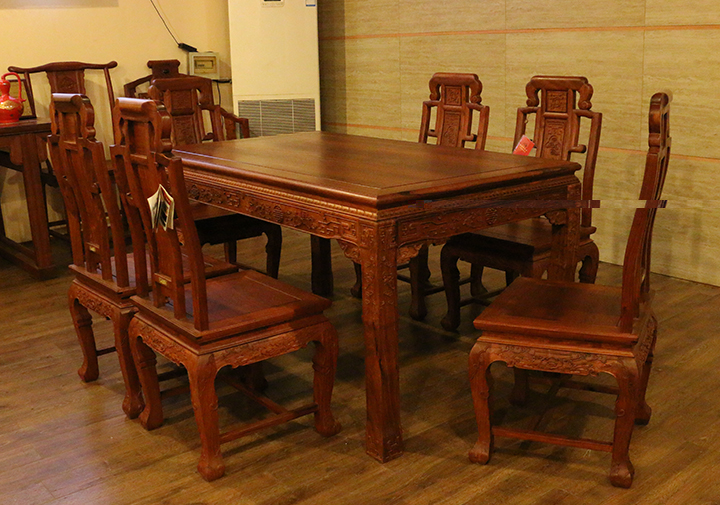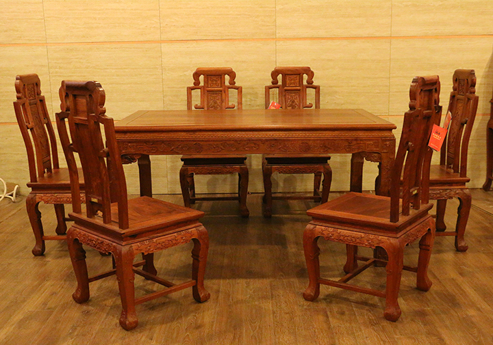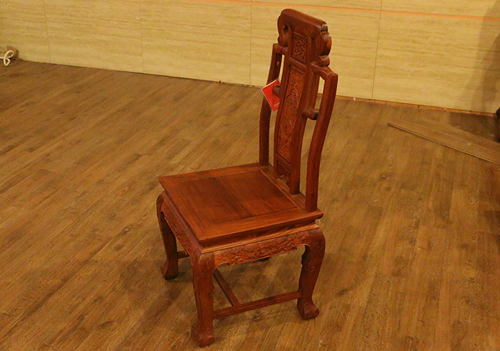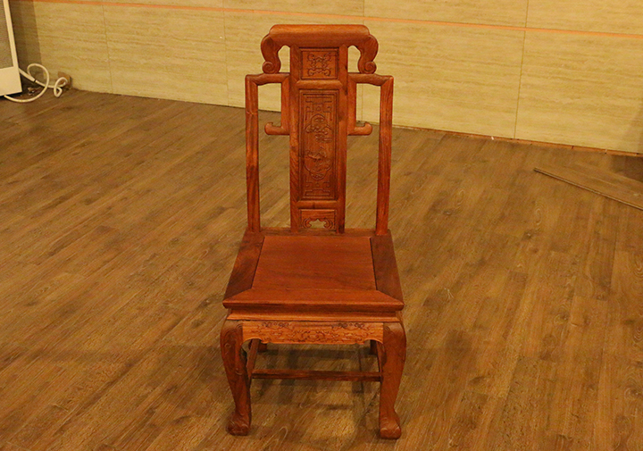 在自己實際的日常生活當中,反而凳子用的較為普遍,一是感覺使用起來比較方便隨意,二是不用像椅子那么占用地方空間。印象當中餐椅用到較多的場所,多是些高檔的餐館酒店禮堂,那一張張大大寬敞的圓形餐桌再環(huán)繞搭配上一面面靚麗白凈的椅靠背板配之的餐椅,多數帶有些歐式風格家具的韻味,頗顯莊園親切之感,有些使人困頓閑暇陶醉恬適之意。而在那些正式莊嚴的場合,譬如舉辦婚禮、生辰大壽時亦或是為了迎接遠方來賓,餐椅的選擇和搭配就更顯得重要和講究了,而今天,同樣筆者要給大家介紹的一款餐椅就是,優(yōu)質緬甸花梨(學名:大果紫檀)制作的松鶴延年餐椅,一起來看看吧: