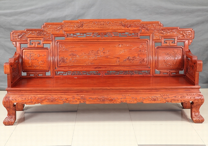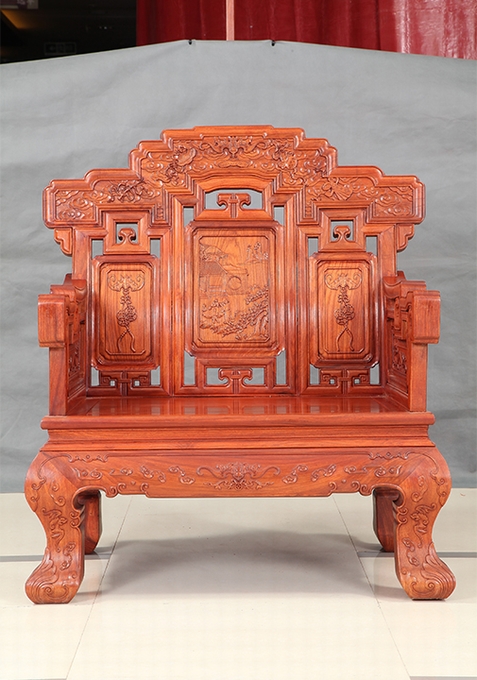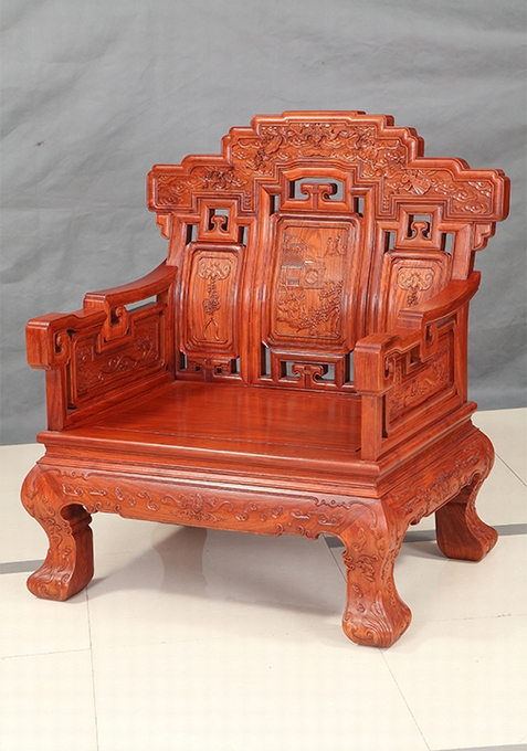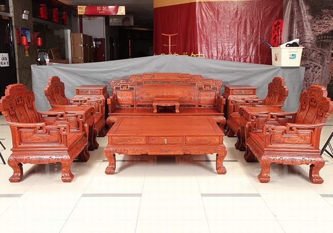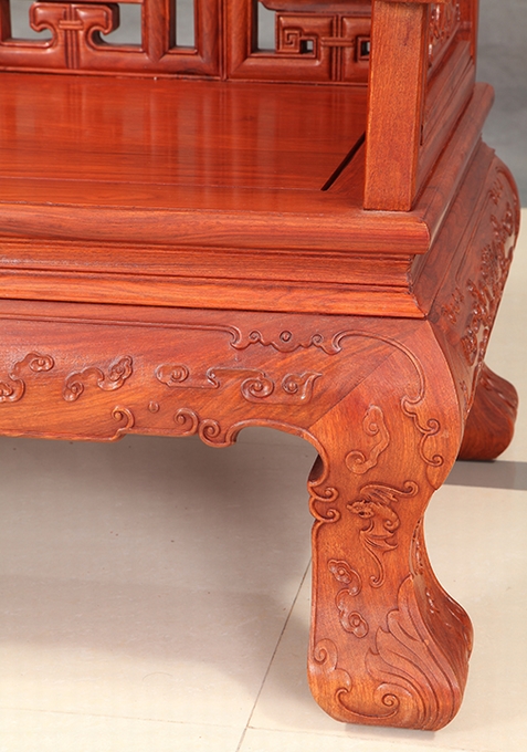 而今天,我們福林堂紅木要為大家介紹的這一款沙發(fā)——祥云寶座沙發(fā),即是這樣一款以之祥云為主要裝飾圖案,附之以蝙蝠、銅錢、磬(Qing)、八寶、行龍紋、魚紋、如意等多種象征寓意紋飾組合而成,另外沙發(fā)整體之外觀仿照古代帝王之寶座外觀設(shè)計,顯得十分地氣派張揚與尊貴,十分適合給那些身份及地位都十分顯赫、重要的人物使用,是一座尊貴的席位,在家中擺放之就好比如置入一座寶座一番,給人以一種沉穩(wěn)、大氣、威嚴之感受,而這一類風格之家居也正是當下仿古式紅木家具中應(yīng)用十分廣泛的一類,只不過它現(xiàn)在已經(jīng)不再顯得那么高高在上的了,而是可以配之以高幾、角幾與大平幾一起使用,感受上更覺舒適平和自然,成為一處可以與普通老百姓一起相陪作伴的普通家居陳設(shè)用品。
