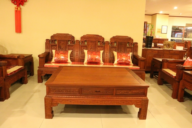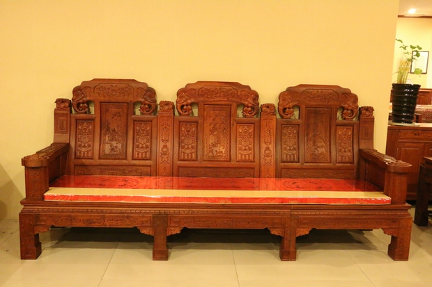 大家好,今天我們福林堂紅木要為大家介紹的這一款沙發(fā),其名字內(nèi)容較為通俗意賅——“豪華如意”?!昂廊A”之意:一是代表其所選用材質(zhì)——緬花的珍貴,二是因?yàn)槟歉∪A鐫秀裝點(diǎn)紋飾的富麗;而如意則指的是這些紋飾在其內(nèi)部所承載的深厚寓意,這其中包含有喻以吉祥富貴吸財(cái)之意的大象紋、代表祥和福瑞之意的麒麟紋、還有寓帶五福象征不老不衰的梅花紋、以及擁有幸福之意的蝙蝠紋、銅錢、魚(yú)紋、銅鈴紋飾等等,它們以物喻情,這也是紅木家具不同于多數(shù)一般類普通家具的重要標(biāo)志所在,可以說(shuō),它們已經(jīng)不單單是一件生活中的家具品那么簡(jiǎn)單,這其中也包含了所使用主人內(nèi)在的精神世界追求和意志情感寄托之需要。