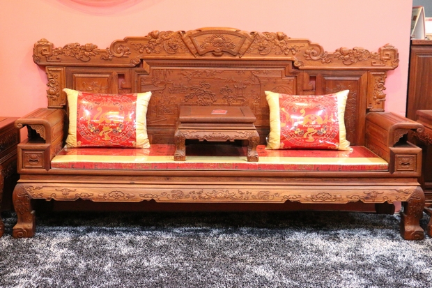 關(guān)于該系列沙發(fā)的具體詳情細(xì)節(jié),考慮到其雕琢繁冗圖案眾多的緣故,我們就著重從其紋飾入手,通過(guò)解析其寓意、并從外觀結(jié)構(gòu)上依次進(jìn)行介紹、另外針對(duì)產(chǎn)品的制作工藝、實(shí)用性等特點(diǎn)進(jìn)行補(bǔ)充描述。