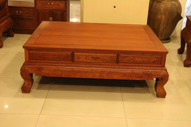 然后是沙發(fā)的座面,溫潤細(xì)實(shí),經(jīng)燙蠟工藝處理后的緬花木面更帶有一種淡淡地透亮光澤,古香古韻。再在下方位置,束腰及牙條部分同樣還有幾些人物、花草、幾何紋飾以及祥云之浮雕雕刻,給人以一種如履仙境之感,藝術(shù)畫面感極為強(qiáng)烈!