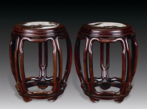 一對紅木鼓凳