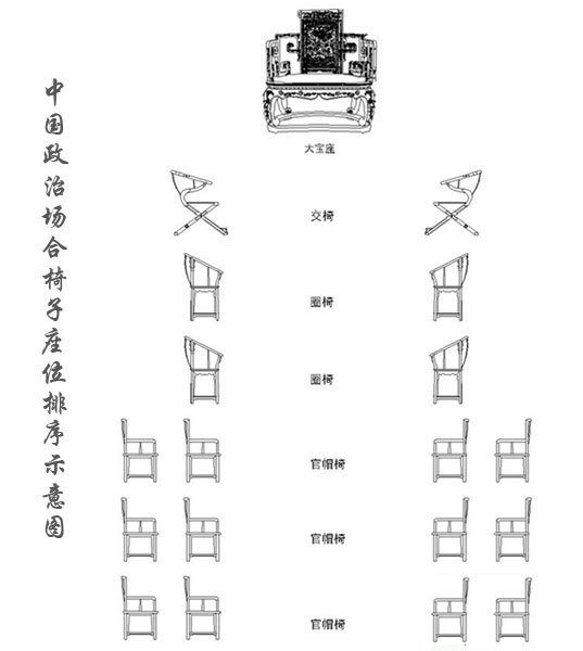 首先,中國的椅子等級高于凳子,其次靠背椅(泛指有靠背的椅子)的等級高于扶手椅(無靠背的椅子),靠背椅中的寶座是專供帝王使用,象征著最高統(tǒng)治者至高無上、獨一無二的權(quán)力和地位。