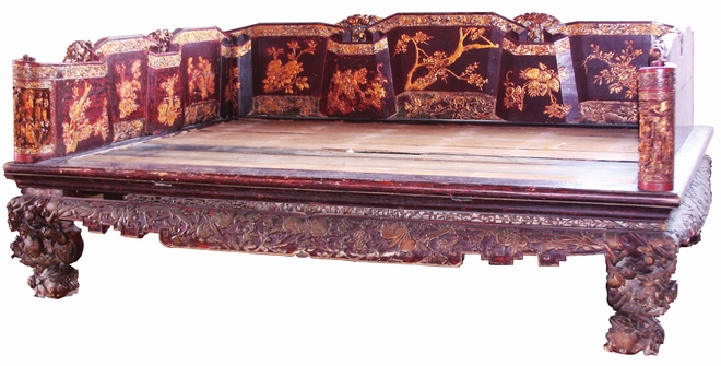 漆器床在清中期以前特別是在明代以前,歷來代表床的最高等級。明文震亨在《長物志·卷六·床》中寫道(床)以宋元斷紋小漆床為第一,小漆即精細(xì)的漆工藝。